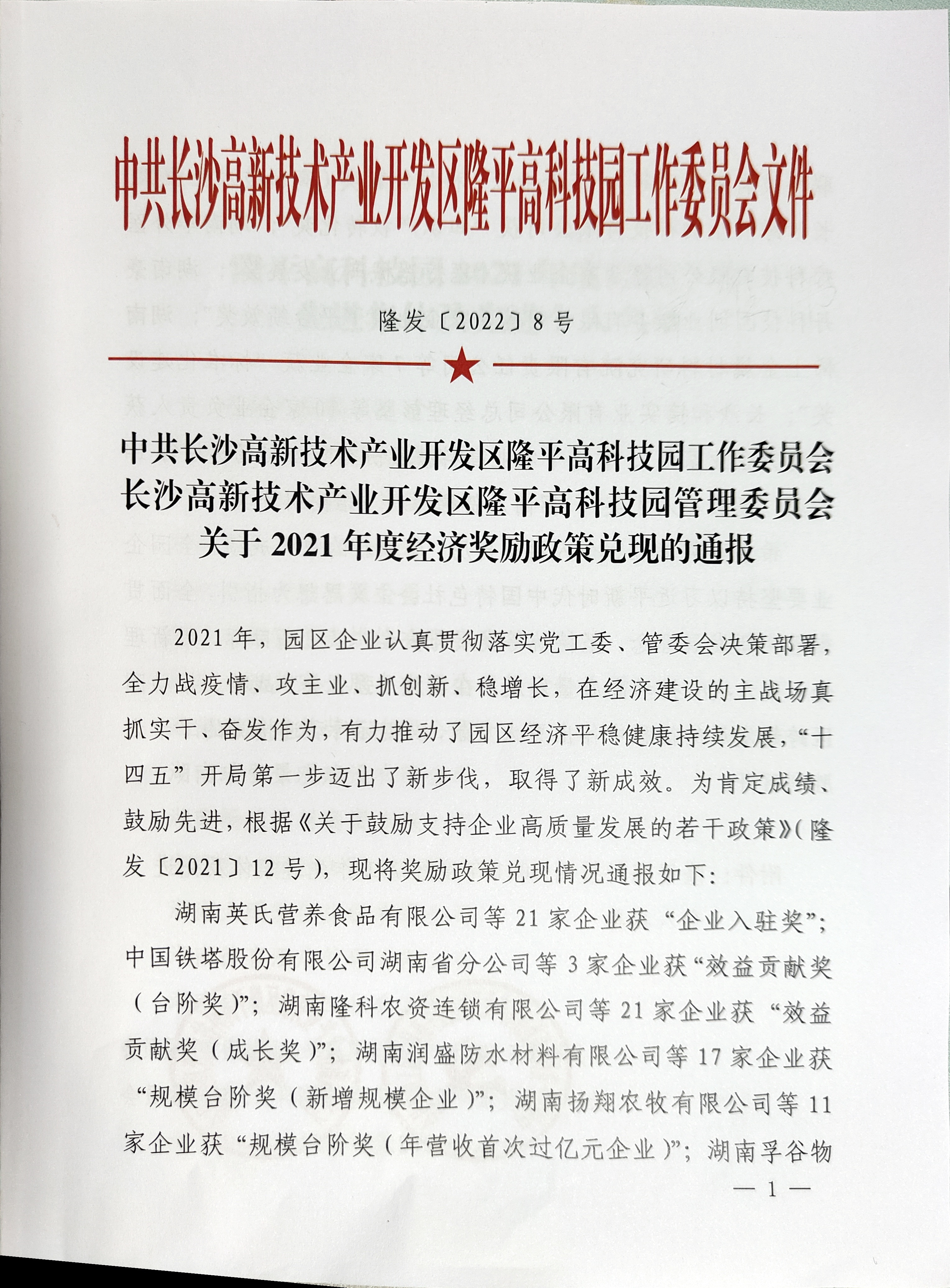 湖南超立方空間信息技術有限公司所在園區長沙高新技術產業開發區隆平高科技園為肯定2021年園區企業認真貫徹落實黨工委、管委會決策部署,全力戰疫情、攻主業、抓創新、穩增長,在經濟建設的主戰場真抓實干、奮發作為,有力推動了園區經濟平穩健康持續發展,“十四五”開局第一步邁出了新步伐,取得了新成效。